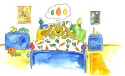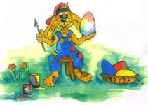 ....Atemlos hoppelte Hopsy zu Hause an, wo Moppel, seine Hasenmama, mit dem Abendessen bereits auf ihn wartete. “Wo war denn mein kleines Hasenbaby?” fragte sie ihren Sohn. “Ich bin kein Babyhase mehr, das sage ich nun schon zum wiederholten Mal,” brummelte Hopsy, “ich bin ein Teen-Nager!” sagte er dann nachdrücklich und nagte dabei am Gräsersalat. “Ihr werdet es nicht glauben,” kicherte Hopsy, “ ich habe auf der Kleewiese beim Osterhasenbach ein kleines Mittagsschläfchen gemacht und dort ein vierblättriges Kleeblatt gefunden. Ein Glückskleeblatt! Das bedeutet doch in Osterhasien, dass ich einen Wunsch frei habe. Ich habe mir natürlich das goldene Osterei gewünscht! Jetzt brauche ich nur noch eine hasencoole Idee für das Design von meinem Osterei und ihr werdet sehen......